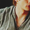 Description: Close-up of Arthur's neck in an open faded blue shirt